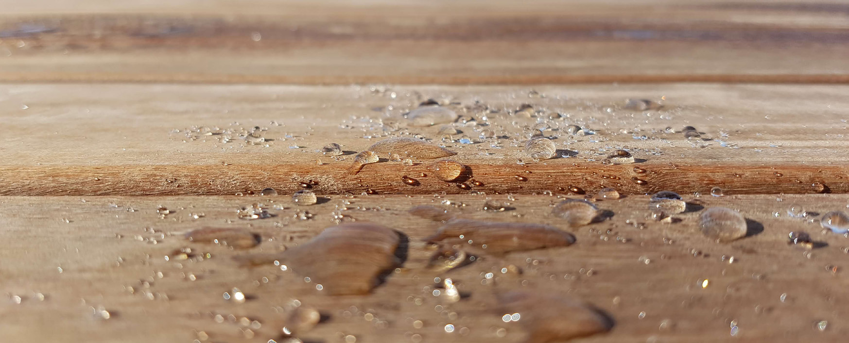 Dirt particles are unable to obtain a hold on wood coated with ProPerla and will simply flow off with rainfall.